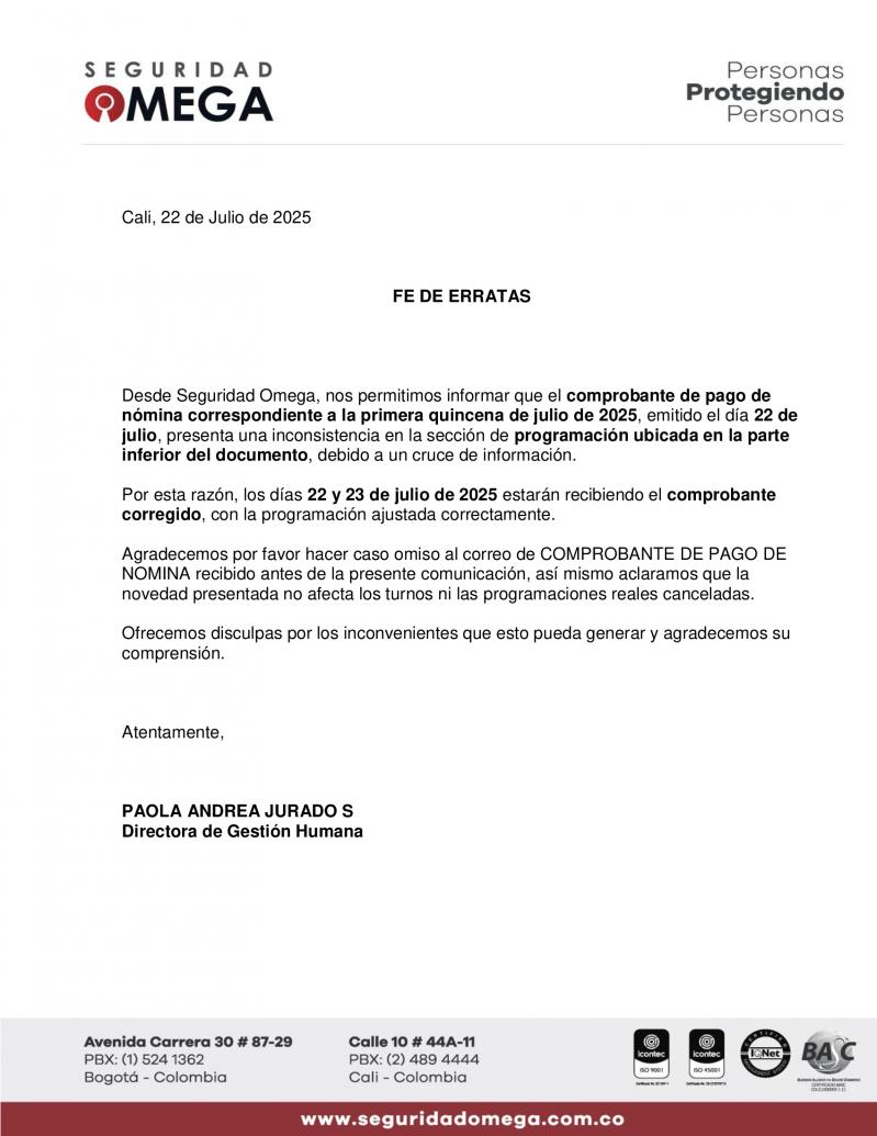 From: "Colaboradores Seguridad Omega- Administrativos" <boletin@PROTECTED>