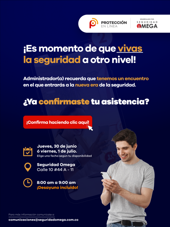 Usted ha recibido este correo porque se encuentra registrado en las bases de datos de SEGURIDAD OMEGA LTDA. y autoriza a nuestra empresa para el tratamiento de sus datos personales; SEGURIDAD OMEGA LTDA. se compromete a dar cumplimiento a lo dispuesto en la Ley 1581 de 2012, el Decreto Reglamentario 1377 de 2013 y concretamente a nuestra Política de Tratamiento de la Información y Datos Personales la cual puede ser consultada en nuestra página web www.seguridadomega.com.co, donde reconocemos nuestra obligación como responsables por el tratamiento de los datos personales que aparecen registrados en nuestras bases de datos los cuales utilizamos con el fin de promocionar nuestros servicios o suministrar información relativa a la seguridad. Si usted no está de acuerdo en mantener esta autorización puede retirar su información de nuestra bases de datos dan clic en el siguiente link…
