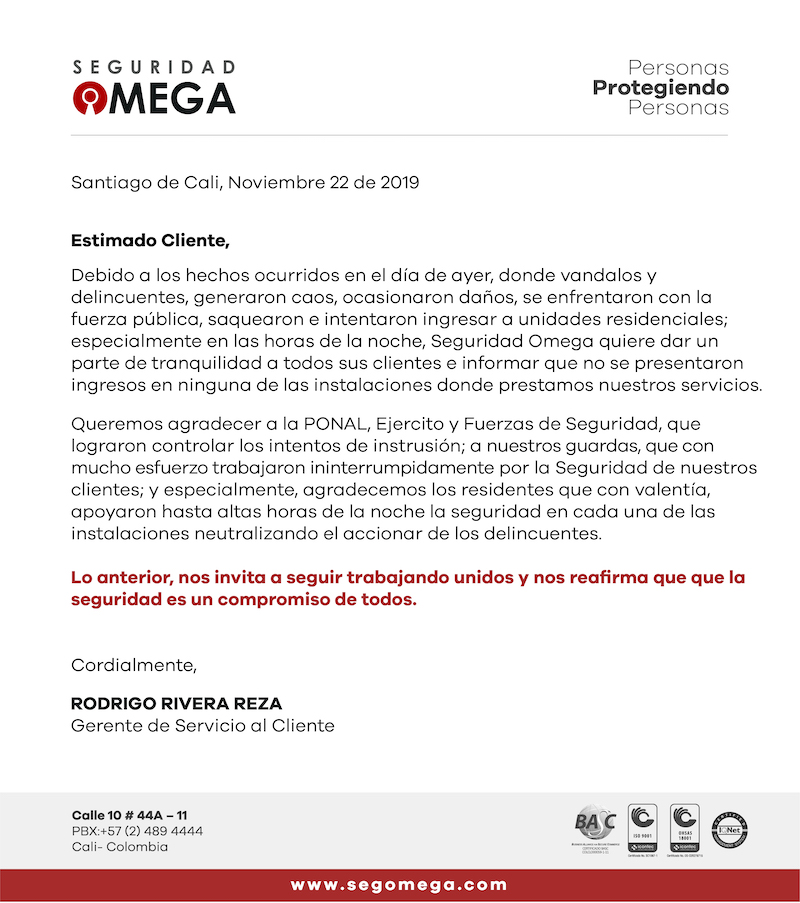 Usted ha recibido este correo porque se encuentra registrado en las bases de datos de SEGURIDAD OMEGA LTDA. y autoriza a nuestra empresa para el tratamiento de sus datos personales; SEGURIDAD OMEGA LTDA. se compromete a dar cumplimiento a lo dispuesto en la Ley 1581 de 2012, el Decreto Reglamentario 1377 de 2013 y concretamente a nuestra Política de Tratamiento de la Información y Datos Personales la cual puede ser consultada en nuestra página web www.segomega.com, donde reconocemos nuestra obligación como responsables por el tratamiento de los datos personales que aparecen registrados en nuestras bases de datos los cuales utilizamos con el fin de promocionar nuestros servicios o suministrar información relativa a la seguridad. Si usted no está de acuerdo en mantener esta autorización puede retirar su información de nuestra bases de datos dan clic en el siguiente link…