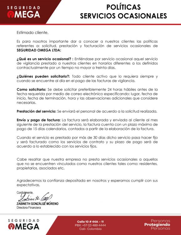 Estimado cliente, conoce nuestra política de servicios ocasionales